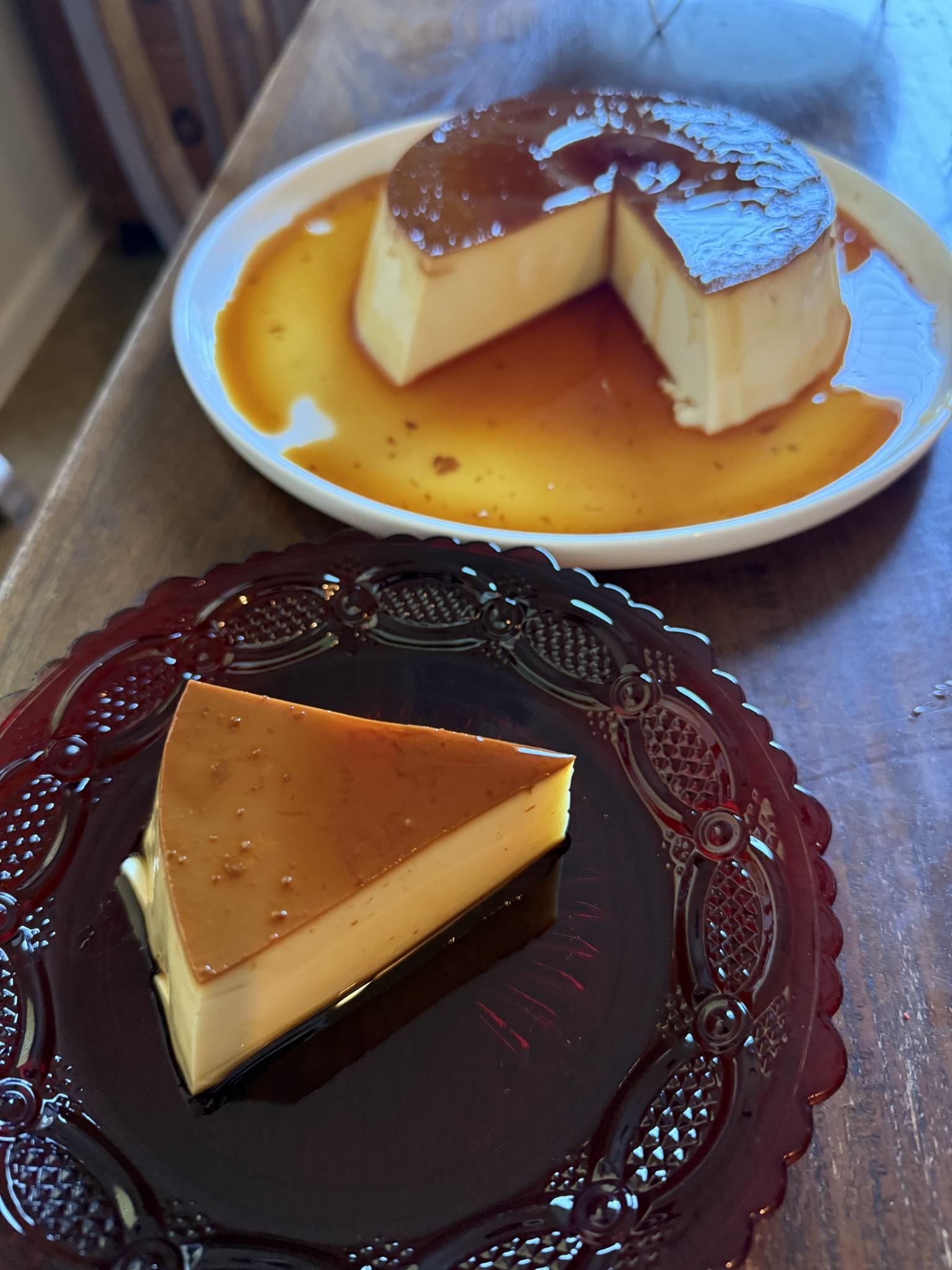 *It’s normal to have some caramelized sugar stuck on the Pyrex bowl after you remove the flan, just soak it in hot water to remove it.