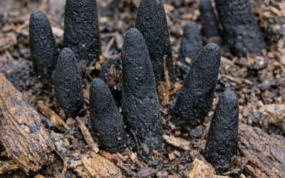 Stumbled across these black, finger-like things poking out of the mulch in my backyard. They are hard and creepy. Does anyone know what this is?
