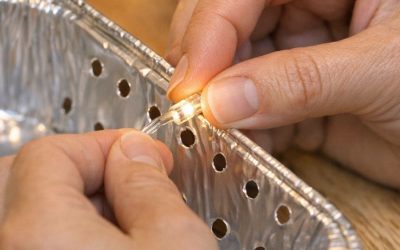 Lady pierces tin trays with string lights. This cheap decor trick is going viral fast