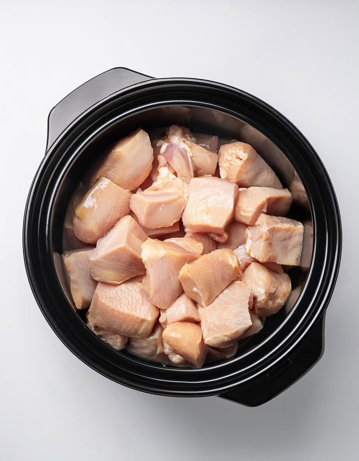 Put raw cubed chicken in a slow cooker with these 4 ingredients. You'll crave this all winter.